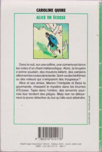 Alice et ses amies, Marion l’intrépide et Bess la gourmande, chassent le mystère dans les brumes d’Écosse. Tapis dans l’ombre, des ennemis sournois leur tendent des pièges. Mais rien ne détournera la jeune détective du but qu’elle veut atteindre.