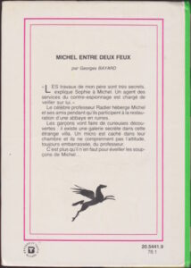 Michel entre deux feux Home Bibliothèque Verte Michel Michel entre deux feux © Hachette , 1993. Tous droits de traduction, de reproduction et d'adaptation réservés pour tout pays. Histoire Pourquoi le professeur Radier semble-t-il toujours si mal à l’aise ?Hébergé chez cet éminent personnage, Michel s’interroge. D’autant plus .qu’il a appris combien les travaux de son hôte étaient secrets … au point qu’un agent des services du contre-espionnage est chargé de veiller sur le savant.Lorsque le jeune homme découvre un micro caché dans sa propre chambre, c’est plus qu’il n’en faut pour éveiller ses soupçons … « Les travaux de mon père sont très secrets, explique Sophie à Michel. Un agent des services du contre-espionnage est chargé de veiller sur lui. »Le célèbre professeur Radier héberge dans sa villa Michel et ses amis pendant qu’ils participent à la restauration d’une abbaye en ruine.Les garçons vont faire de curieuses découvertes : il existe une galerie secrète dans cette étrange villa. Un micro est coché dans leur chambre et ils ne comprennent pas l’altitude, toujours embarrassée, du professeur.C’est plus qu’il n’en faut pour éveiller les soupçons de Michel. Infos Auteur : Georges BayardSérie : Michel P'tite infos Ce livre a 189 pages et porte le N° 210. Les P'tites listes des Bibliothèque VerteType de livre , Série , Auteur. 2 ième couverture pour ce titre, Version Souple publié en 1988 3 ième couverture pour ce titre, Version cartonnée non numérotée publié en 1978 pour 180 pages 23 avril 2018 ← Article précédent Article suivant → 0 0 votes Article Rating S’abonner Notification pour nouveaux commentaires de suivi nouvelles réponses à mes commentaires Label {} [+] Nom* E-mail* Site web Label {} [+] Nom* E-mail* Site web 0 Commentaires Commentaires en ligne Afficher tous les commentaires